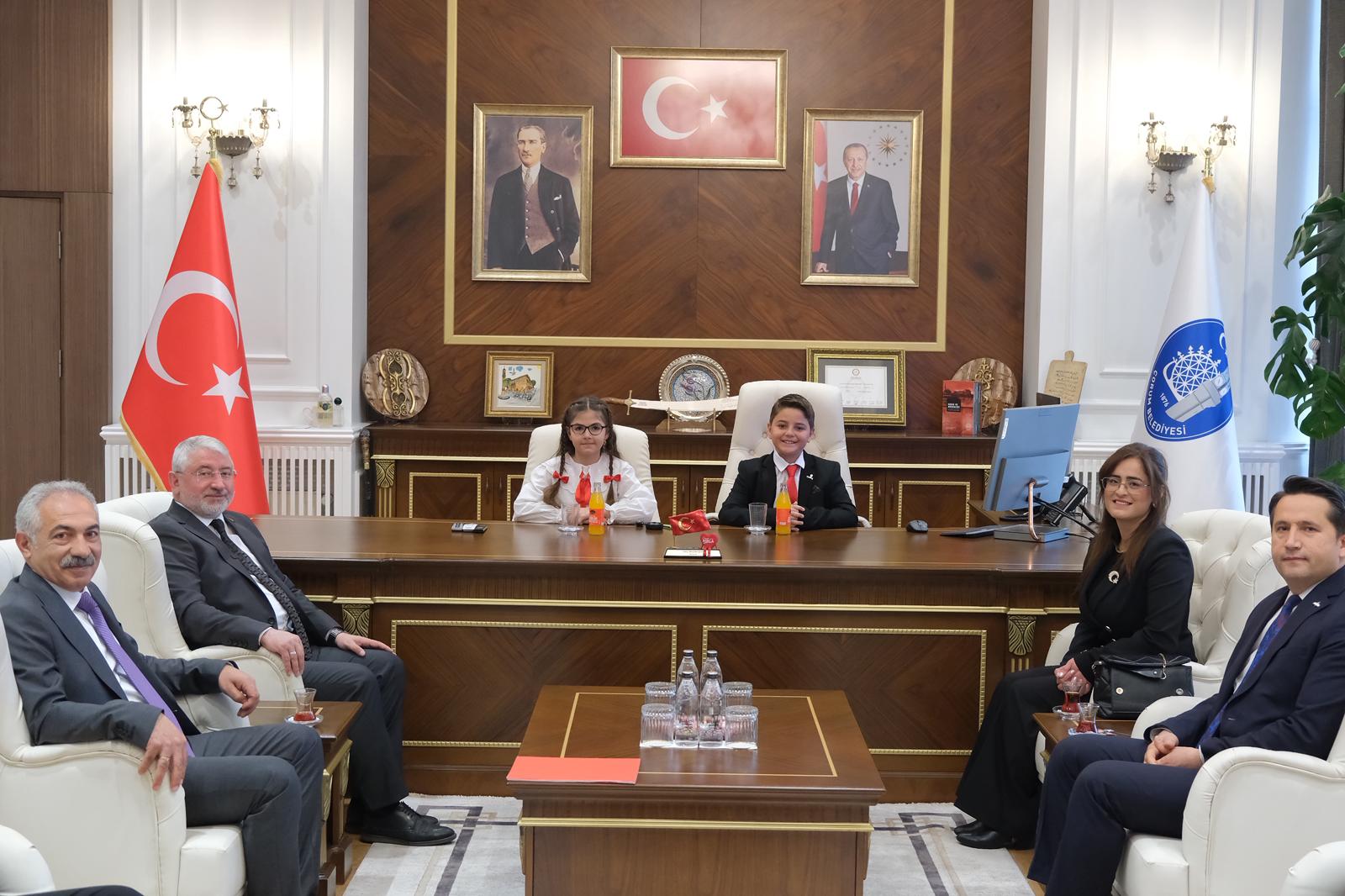 İsmail Kakaç İlkokulu 4. sınıf öğrencileri Zeynep Sözten ve Rüzgar Ali Kışla, günün anlam ve önemine uygun olarak Belediye Başkanı Dr. Halil İbrahim Aşgın’dan başkanlık görevini kısa süreliğine devraldı.