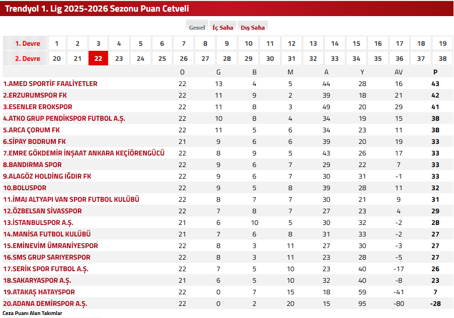 Bu sonucun ardından Arca Çorum FK puanını 38’e yükseltirken, Sarıyer SK 27 puanda kaldı.