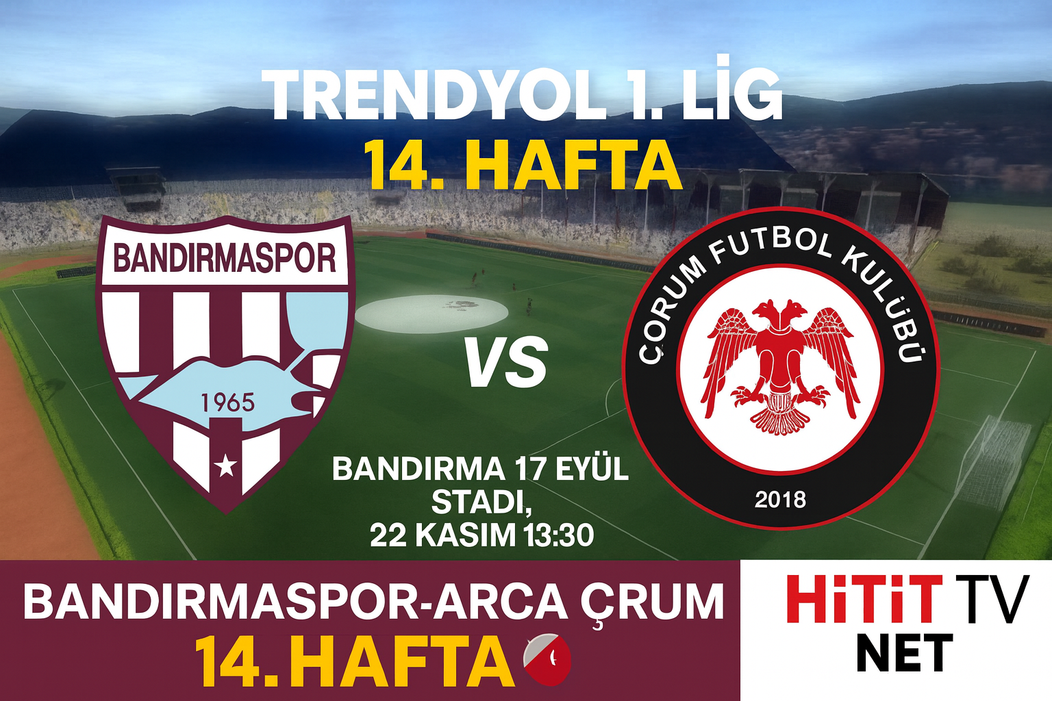 Trendyol 1. Lig’in 14. haftasında Arca Çorum FK, zirve yolunda kritik bir sınava çıkıyor. Kırmızı-siyahlılar, 22 Kasım Cumartesi günü saat 13.30’da Bandırmaspor’un konuğu olacak. Çorum ekibi, geçtiğimiz hafta Iğdır FK karşısında aldığı 3-1’lik galibiyetle moral depolamış olarak deplasmana gidiyor.