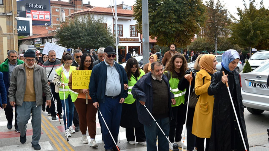 Çorum’da 15 Ekim Beyaz Baston ve Güvenlik Günü kapsamında görme engellilerin günlük yaşamda karşılaştıkları zorluklara dikkat çekmek amacıyla farkındalık yürüyüşü düzenlendi.