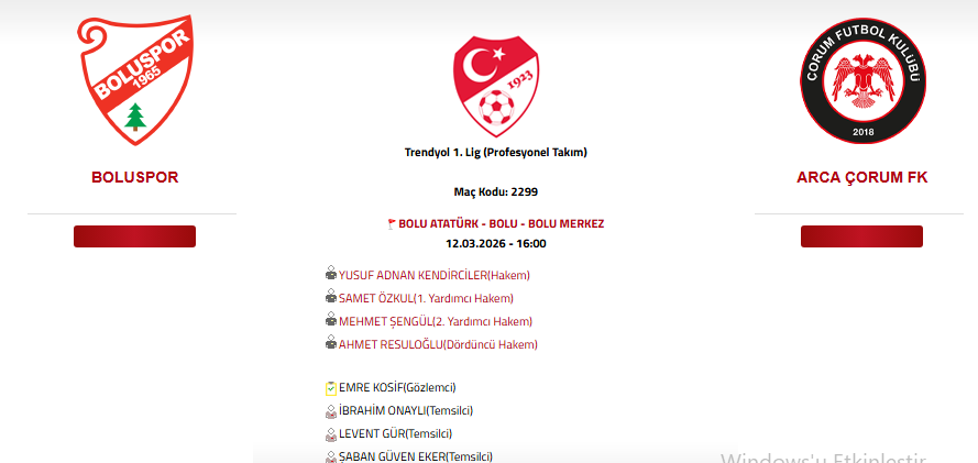 Sarı Kartlar: Kerem Kalafat (Çorum FK), Lucas Lima (Boluspor)