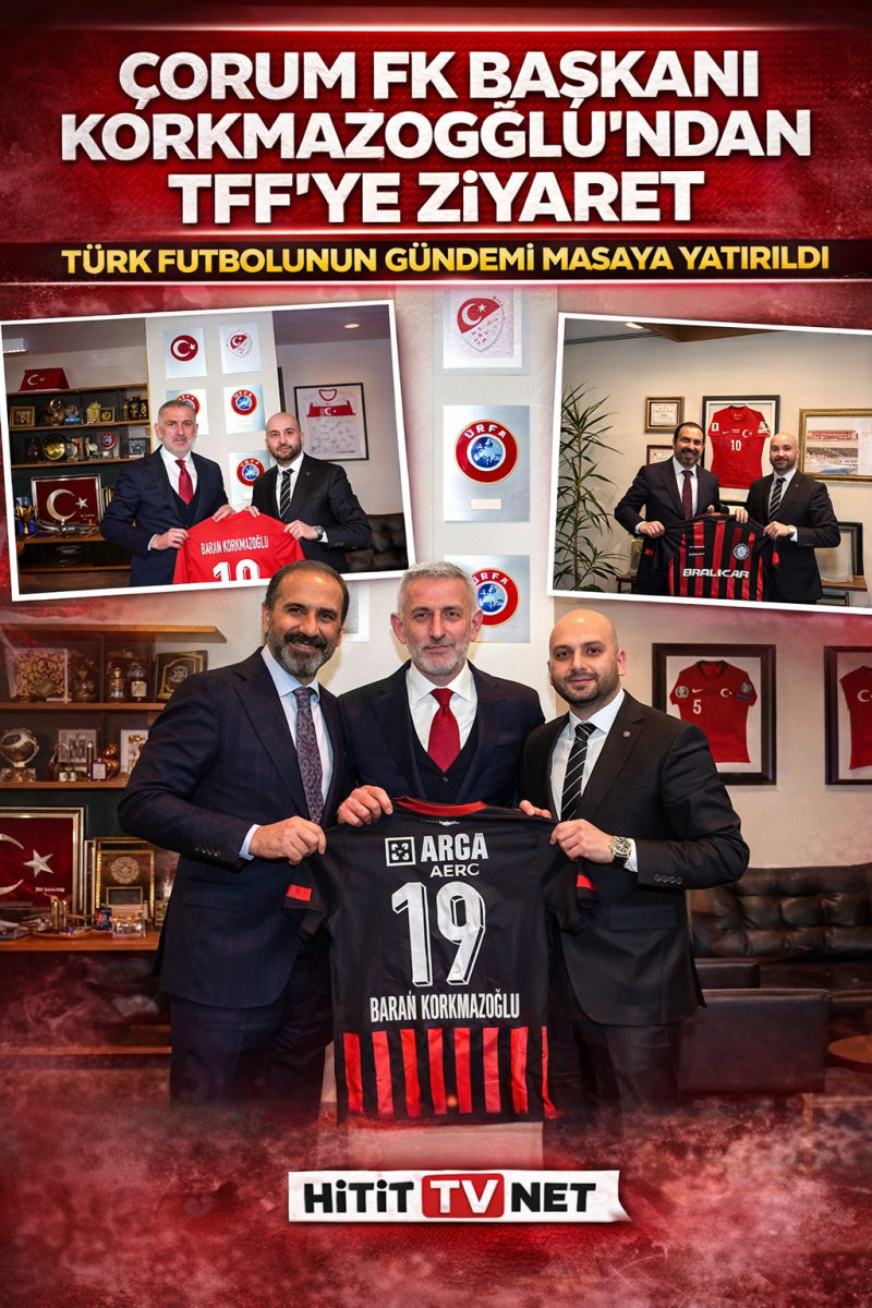 ÇORUM (Hitit TV Net) – Arca Çorum Futbol Kulübü Başkanı Baran Korkmazoğlu, Türkiye Futbol Federasyonu Başkanı İbrahim Hacıosmanoğlu ve TFF Başkan Vekili Mecnun Otyakmaz’ı makamında ziyaret etti.