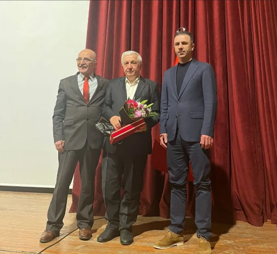 Yoğun ilgi gören programın sonunda Mustafa Şimşek, Mehmet Okuyan’a günün anısına çiçek takdim etti.