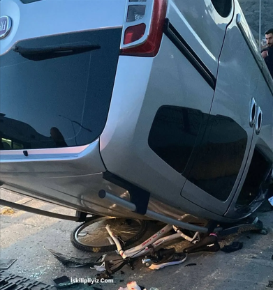 Sürücüsünün direksiyon hakimiyetini kaybetmesi sonucu takla atan araç, bisiklet süren M.Ş.’nin üzerine devrildi.