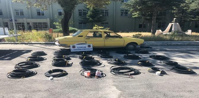 Edinilen bilgilere göre, merkeze bağlı Seydim köyü yakınlarında jandarma ekiplerinin devriye görevi yaptığı sırada bir araç kaçmaya başladı. Bunun üzerine şüpheli aracın peşine düşen jandarma ekipleri otomobili il merkezi girişinde durdurdu. Şahsın kimlik bilgilerini sorgularken İ.K.’nin tavırlarından şüphelenen jandarma ekipleri araçta kablo parçası bulunca Cumhuriyet savcılığına bilgi vererek arama kararı talebinde bulundu. Alınan arama kararı doğrultusunda otomobilin arka koltuk ve bagajında arama yapan ekipler, rulo halinde piyasa değeri 85 bin TL olan kablo ele geçirdi. Olay yerinde de inceleme yapan ekipler, kabloların kesilmesinde kullanılan makaslar da buldu.