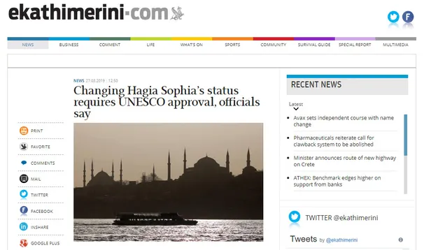 Yunan medyası konuyu UNESCO yetkilileriyle görüşerek böyle bir şeyin mümkün olup olamayacağını sordu. İddiaya göre UNESCO yetkilileri statünün değişmesi için, "Dünya Miras Komitesi'nin onayı alınmalı" dedi.