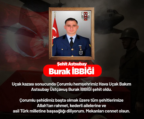 Kazanın ardından şehit olan 20 askerimizin isimleri kamuoyuyla paylaşıldı. Şehitler arasında Çorumlu Hava Uçak Bakım Astsubay Üçüncü Sınıf Burak İbbiği de yer aldı. İbbiği’nin Çorum Merkez Yaydiğin Köyü nüfusuna kayıtlı olduğu öğrenildi. Acı haber ailesine askeri yetkililer tarafından iletildi.