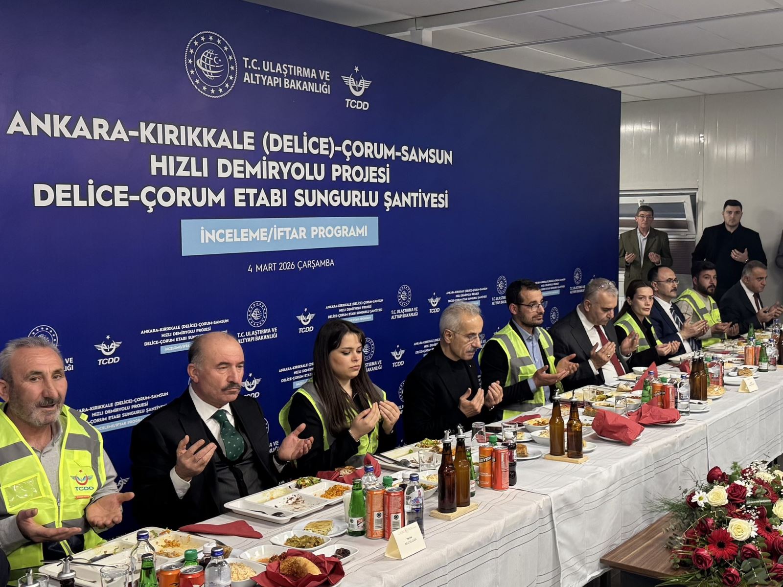 Ulaştırma ve Altyapı Bakanı Abdulkadir Uraloğlu, Kırıkkale (Delice) – Çorum Hızlı Tren Hattı şantiyesinde çalışan personelle iftar programında bir araya geldi. Sungurlu’da düzenlenen programda işçiler, mühendisler ve teknik personelle aynı sofrayı paylaşan Bakan Uraloğlu, projede emeği geçen tüm çalışanlara teşekkür etti.