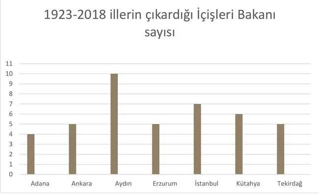 Her kabinede ilk bakılan bakanlıklardan biridir İçişleri Bakanlığı. Bu bakanlıkta liderlik ise üç büyüklere ait değil. İlginç bir şekilde Aydın öne çıkıyor. 1923'ten 2018'e kadar Aydın 10 defa İçişleri Bakanı çıkarmış. Aslında cumhuriyetin ilk yıllarında Aydın'ın bu bakanlık bazında esamesi okunmuyor, 1950'den sonra Aydın, bakan çıkarmaya başlıyor. 1950-2002 arasında 10 kez bakan çıkarıyor. 2002'den sonra bir duraklama olsa da İçişleri Bakanlığı'nda hâlâ lider. Aydın'ı 7 kez İçişleri Bakanı çıkaran İstanbul ile 6 defa bakan çıkaran Kütahya takip ediyor.
