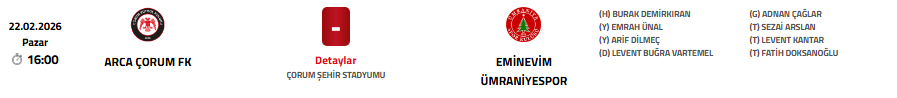 Ligde şu ana kadar 13 galibiyet, 5 beraberlik ve 8 mağlubiyet alan Çorum FK, 44 puanla 6. sırada yer alıyor. Play-off hattındaki yerini sağlamlaştırmak isteyen kırmızı-siyahlılar, evinde kazanarak yoluna kayıpsız devam etmeyi hedefliyor.
