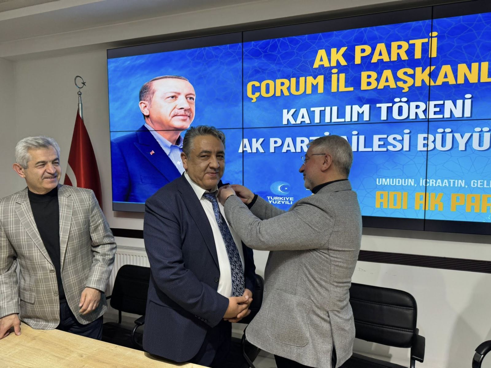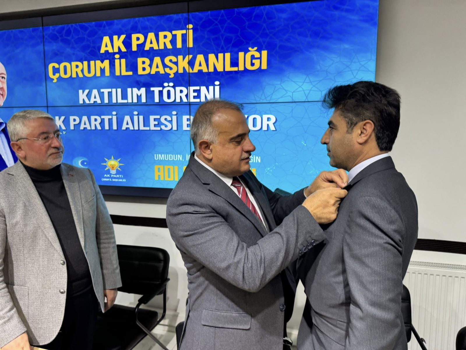 AK Parti Çorum İl Binası’nda gerçekleştirilen katılım törenine Belediye Başkanı Dr. Halil İbrahim Aşgın ile İl Yönetim Kurulu Üyeleri katıldı. Törende Adanır ve Demir’in rozetleri takıldı, parti üyelikleri gerçekleştirildi.