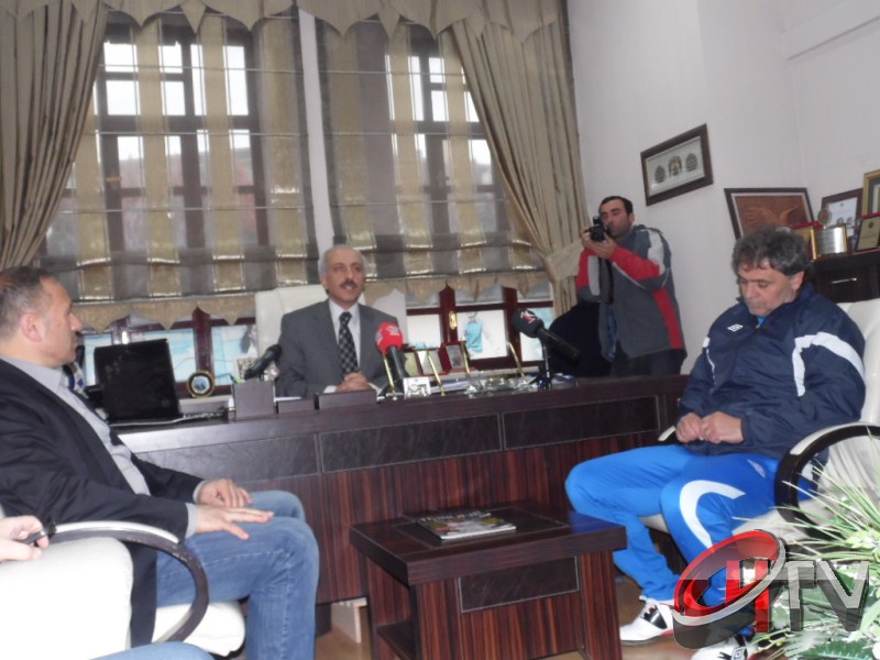 Çorum Belediye Spor Kulüp başkanı Zeki Gül'ün makamında gerçekleşen basın toplantısına Hayrettin Gümüşdağ,Halit Kılıç,Mustafa Ercan ve Teknik ekip hazır bulundu.