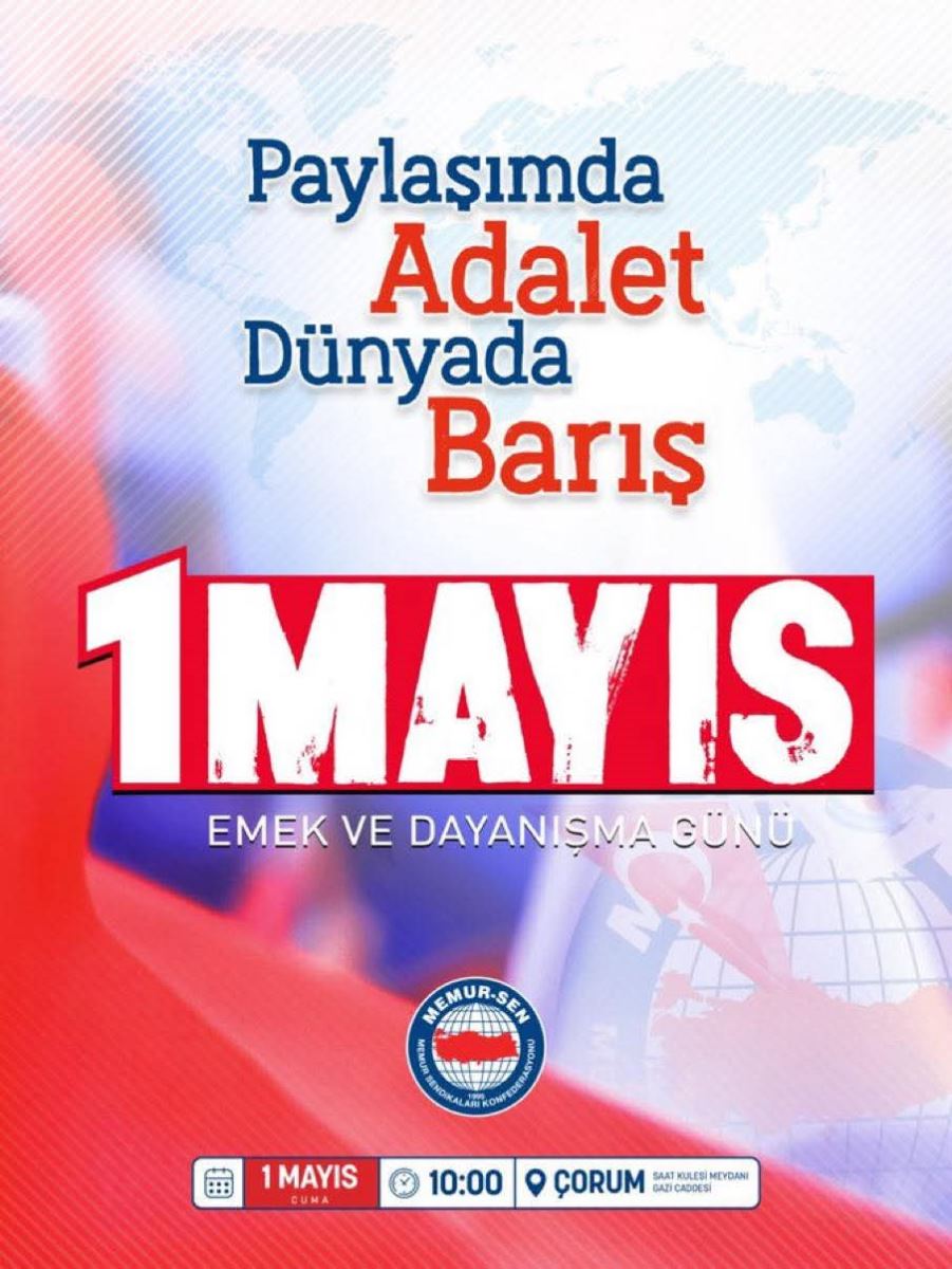 Bu yıl Memur-Sen’in 1 Mayıs programına ev sahipliği yapacak olan Çorum’da, binlerce kişinin katılımıyla geniş çaplı bir miting düzenlenmesi bekleniyor.