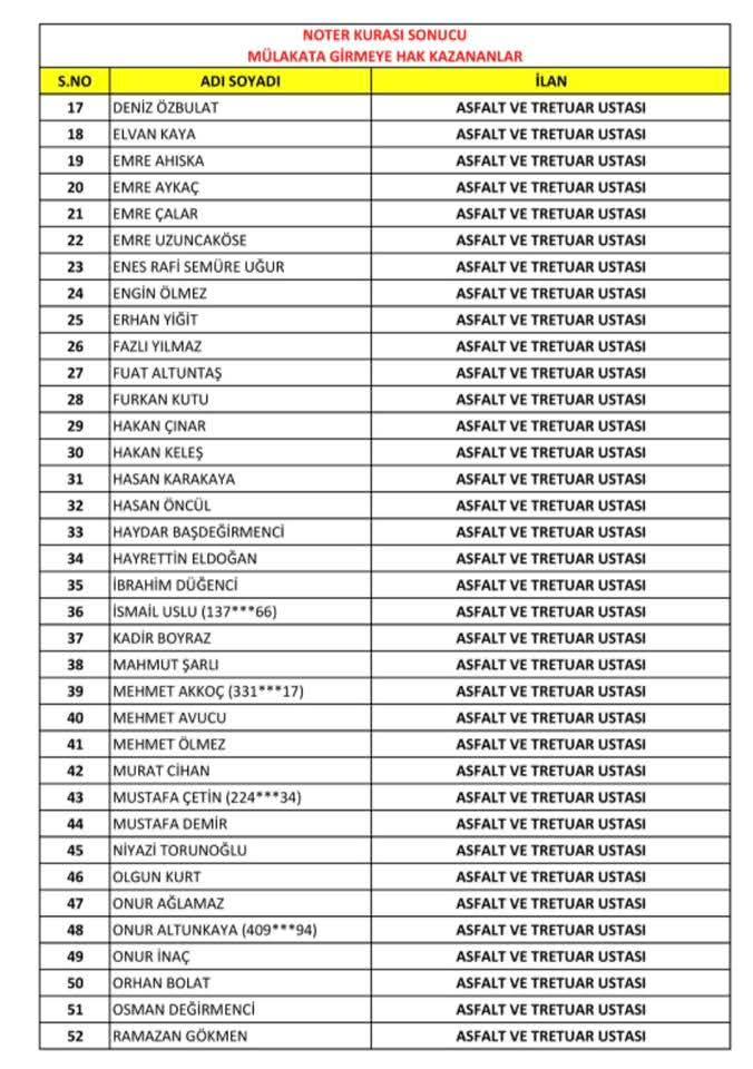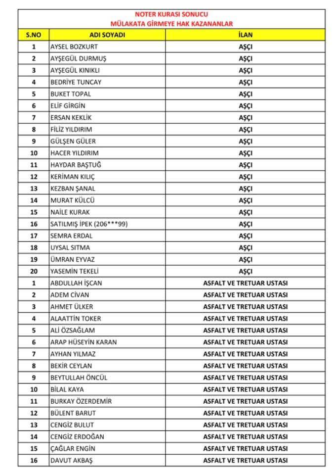 Kura sonuçlarının tam listesi, Çorum Belediyesi Kariyer ve İş Merkezi (ÇOKİŞ) tarafından cokis.com.tr adresinde yayımlandı.