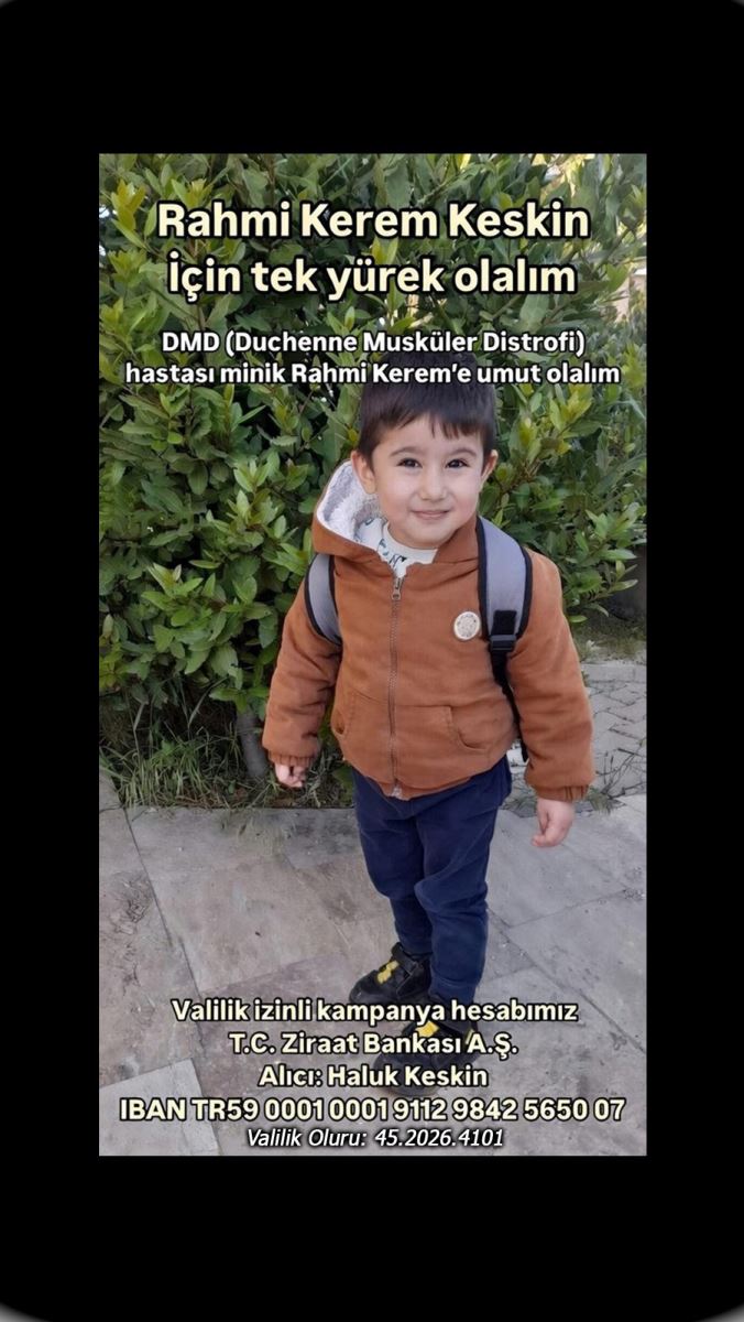 Manisa’da yaşayan Rahmi Kerem Keskin’in, Babası İsklipli Hemşehrimiz Dr. Haluk Keskin, Manisa’da Görev yapıyor. Dedesi İsklip’li hemşehrimiz Ömer Kesin İskilip’te yaşıyor. Rahmi Kerem Keskin Duchenne Musküler Distrofi (DMD) hastalığıyla yaşam mücadelesi veriyor. Minik Rahmi Kerem için başlatılan yardım kampanyası, Manisa Valiliği izniyle yürütülüyor.