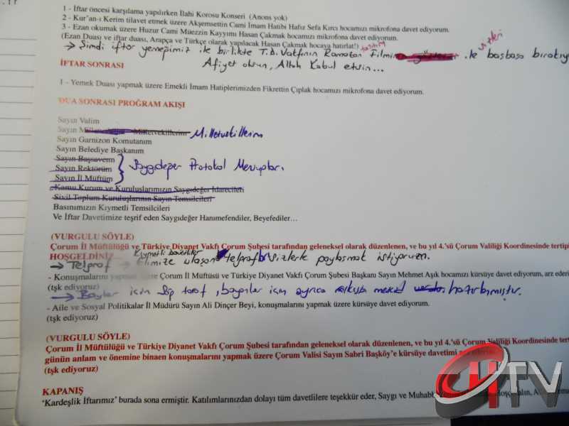 Çorum İl Müftülüğü Türkiye Diyanet Vakfı Çorum Şubesi tarafından geleneksel olarak düzenlenen bu yıl 4.sü Çorum Valiliği Koordinasyonu ile tertip edilen İftar Yemeği verildi.