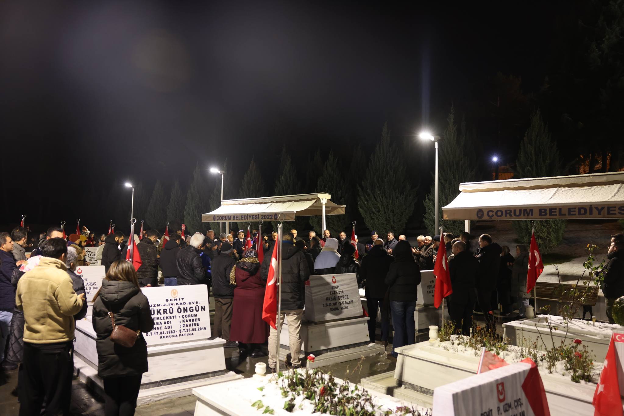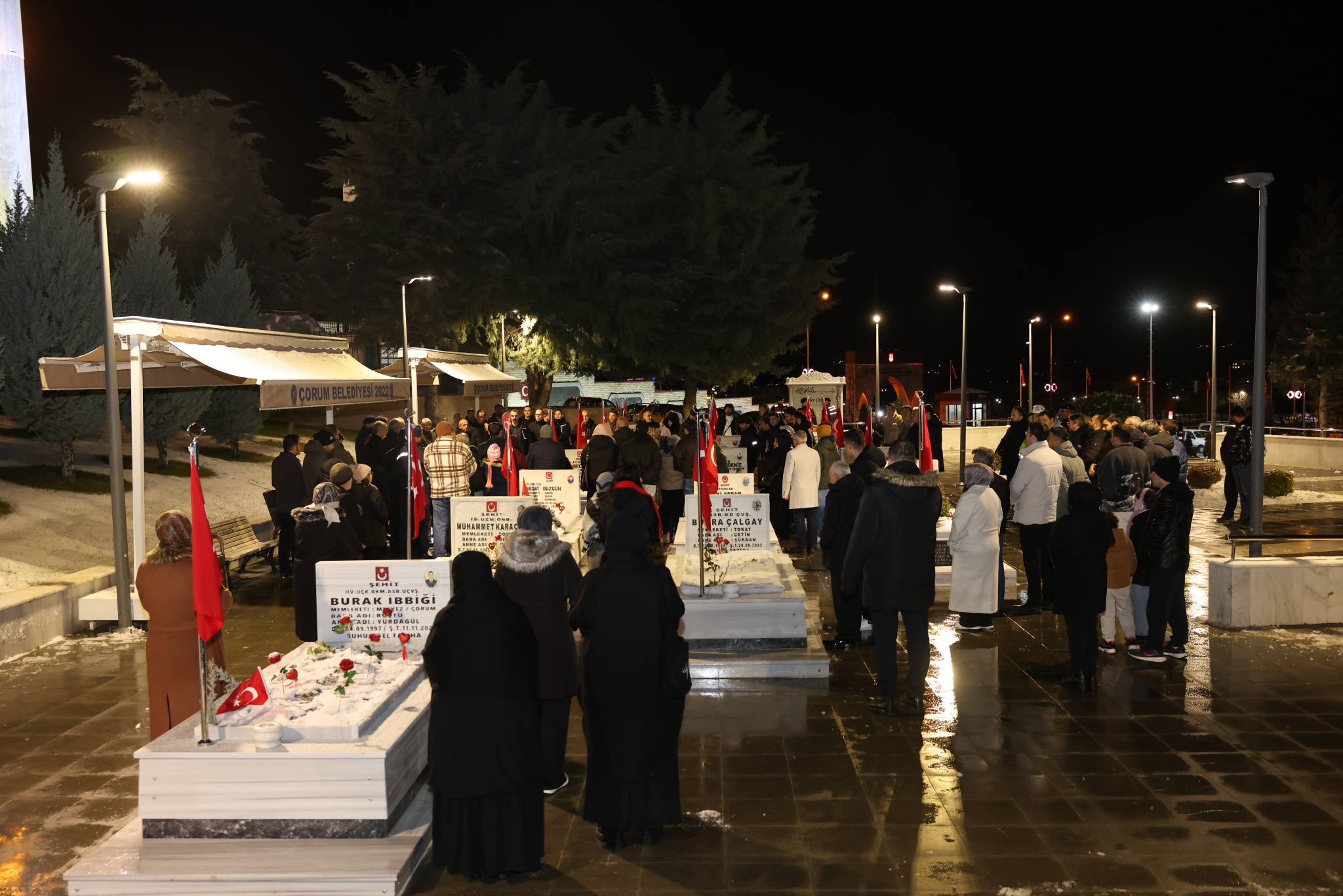Türkiye Harp Malulü Gaziler, Şehit, Dul ve Yetimleri Derneği Çorum Şubesi tarafından yılbaşı dolayısıyla Çorum Şehitliği’nde anlamlı bir program düzenlendi. Şehit aileleri, yeni yılın ilk saatlerini evlatlarının, eşlerinin ve yakınlarının kabirleri başında karşıladı.