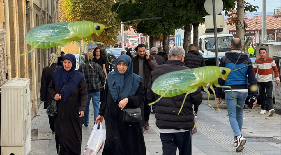 Belediye ekipleri böceğe karşı ilaçlama çalışması yaparken, böcek türü nedeniyle ulaşımın yoğun olduğu cadde ve sokakları kullanan halk, zor durumda kaldı.