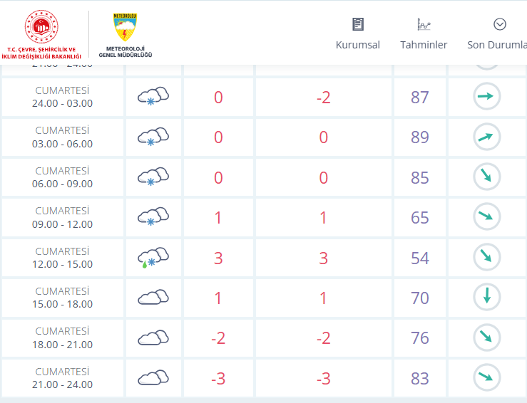 Cumartesi gününden itibaren kentte en düşük hava sıcaklığının -5 dereceye kadar düşmesi bekleniyor.