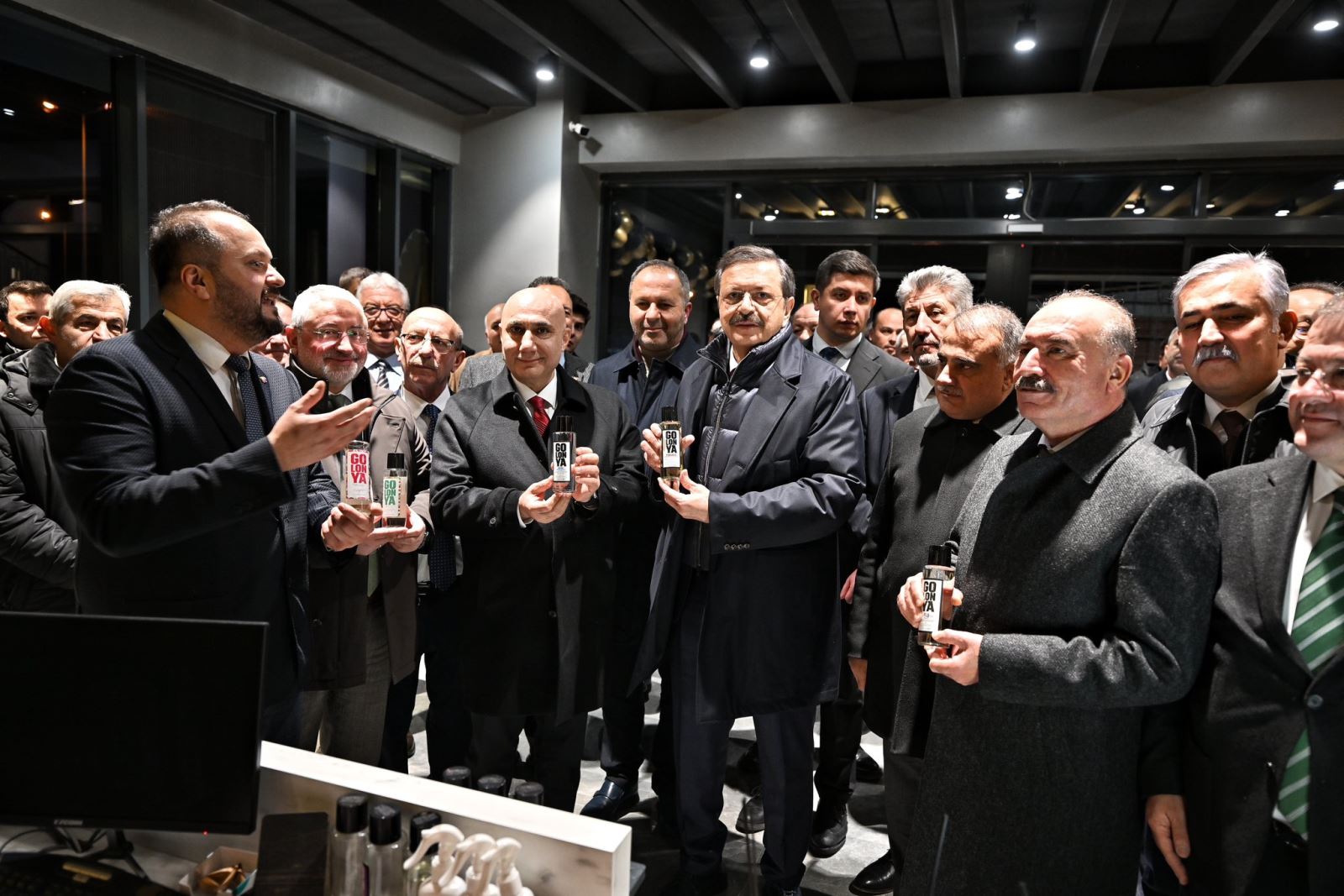Yeni tesiste kolonya üretiminin yanı sıra katma değeri yüksek tıbbi aromatik ürünlerin de üretileceğini vurgulayan Hisarcıklıoğlu, genç girişimci Ali İlker Tosun ve ekibini tebrik etti.