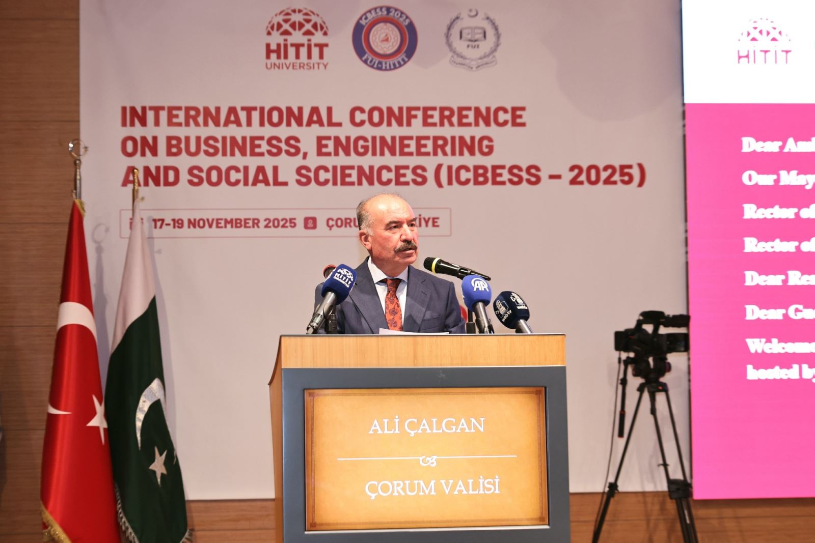 Çorum Valisi Ali Çalgan, Türkiye ile Pakistan’ın ilişkilerinin tarih boyunca ortak değerler, güven ve dayanışma üzerine inşa edildiğini belirtti. Çalgan, bilimsel işbirliklerinin iki ülke arasındaki dostluk ve stratejik ortaklığa yeni bir boyut kazandıracağını vurguladı.
