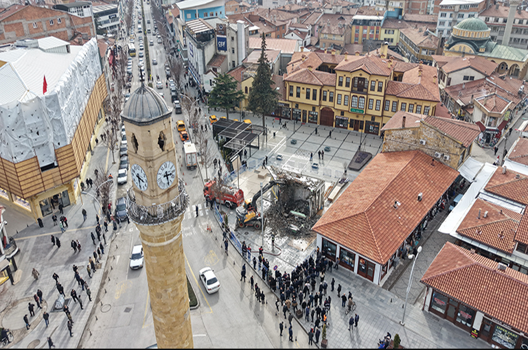Çorum’da “Tarihi Şehir Meydanı” projesi kapsamında önemli bir adım daha atıldı. Proje alanında anahtarcı esnafının bulunduğu yapı kamulaştırılarak yıkıldı. Böylece Veli Paşa Hanı’nın önünü kapatan son engel de kaldırılmış oldu.