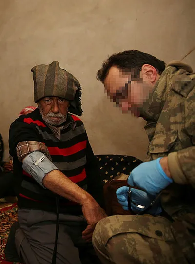 Mehmetçik evlerine dönen ailelere gıda yardımında bulunurken, askeri doktorlar köy sakinlerini sağlık kontrolünden geçirdi.