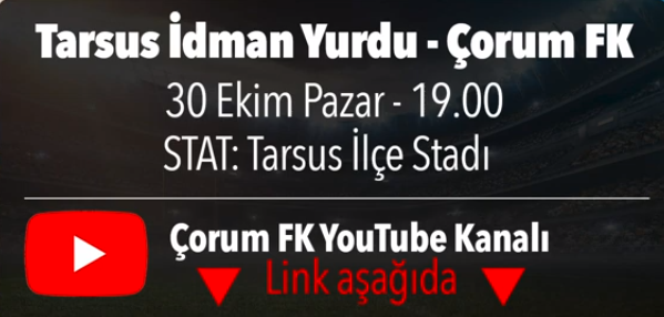 TFF 2.Lig Beyaz Grup'ta mücadele eden temsilcimiz Çorum FK, Tarsus İdman Yurdu'na konuk oluyor.Maç saati 19:00'da . Birçok kişi Tarsus İdman Yurdu - Çorum FK maçını televizyon karşısında izlemek istiyor.Tarsus İdman Yurdu - Çorum FK maçı temsilcimiz Çorum FK'nın YouTube hesabından canlı yayınlanacak...