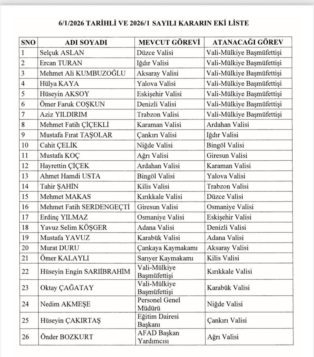🔴 Cumhurbaşkanı imzasıyla yayımlanan Valiler Kararnamesi Resmî Gazete’de duyuruldu.